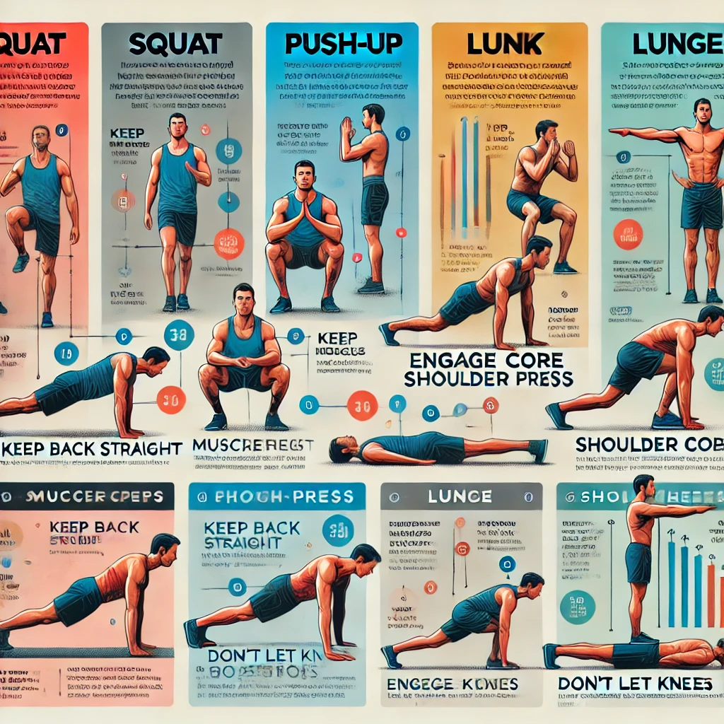 - 방법: 손은 어깨 너비보다 약간 넓게, 몸을 일직선으로 유지하며 팔을 굽혔다 펴기