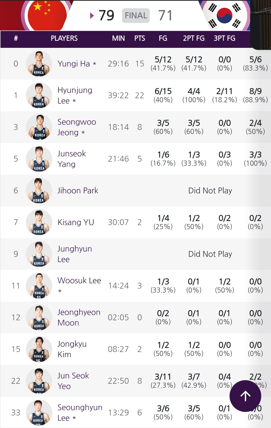대한민국 남자국가대표님의 FIBA아시아컵 여정은 8강에서 멈추게 되었다.