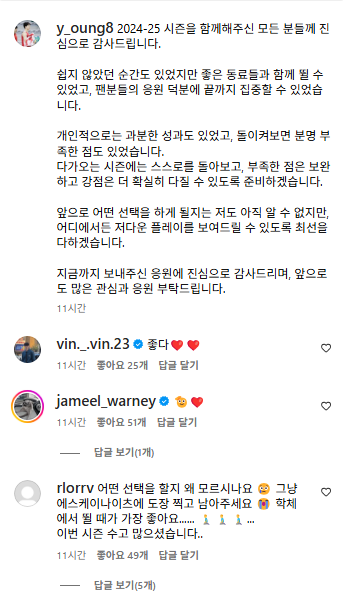 : 안영준의 인스타그램 피드 내용에 따라 다들 이적을 예상하는 분위기입니다.
